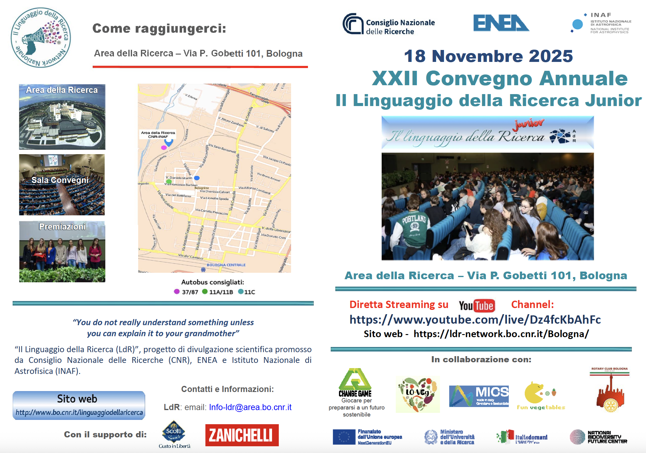 Riso Scotti Snack per il 2025 fornisce il proprio sostegno alla XXII edizione del Convegno “Il Linguaggio della Ricerca”, l’iniziativa di divulgazione scientifica promossa dal CNR insieme a ENEA e INAF che avvicina studenti e studentesse alla ricerca scientifica e alla cultura dell’innovazione (https://ldr-network.bo.cnr.it/Bologna/).